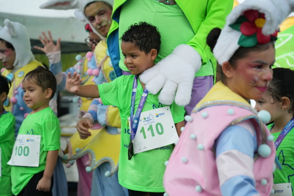 Diferente dos adultos, que correram pelas ruas no entorno do parque, as crianças competiram em um percurso montado dentro da própria estrutura do Parque da Cidade. E levaram a disputa a sério, com direito a aquecimento ao lado da turma do Coelhinho da Páscoa, minutos antes da largada.